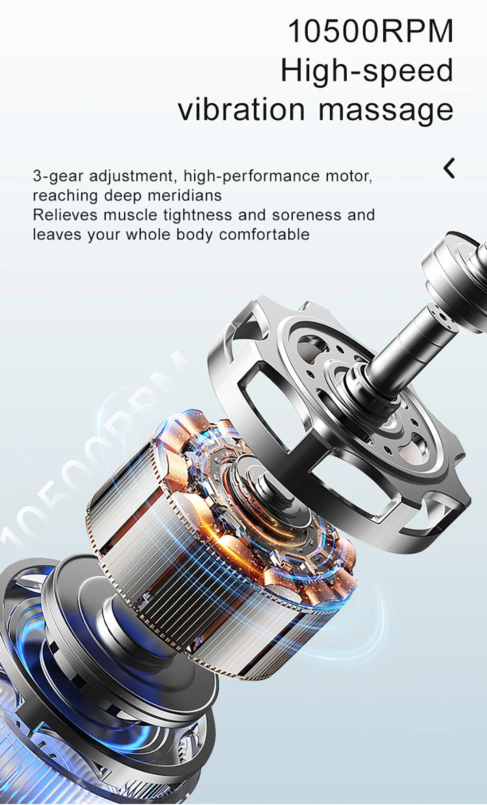 - 3-in-1 Therapy: Combines gentle heat, high-frequency vibration (up to 10,500 RPM), and NMES stimulation for deeper muscle activation and tension release.